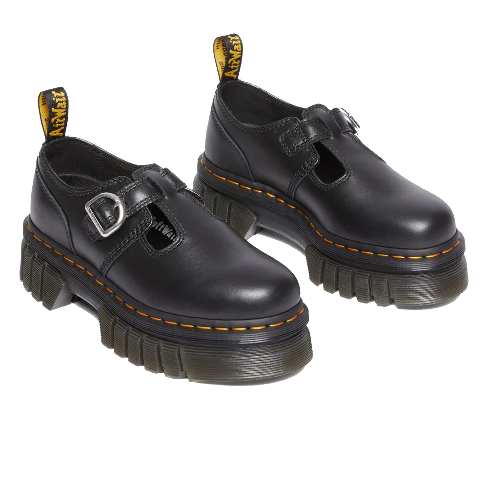 - The Audrick T-bar is built from Nappa Lux leather and is detailed with a puritan triple stitch that nods to Dr. Martens' construction heritage.